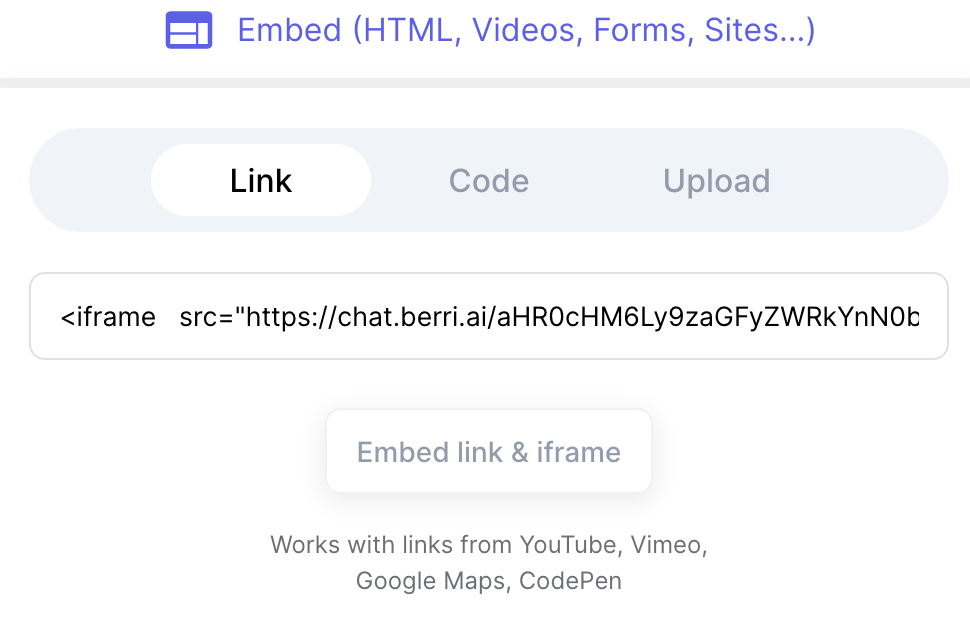 Just paste your code into your website. For example, if you’re trying to embed this into a no-code website like Typedream, this is what it would look like: